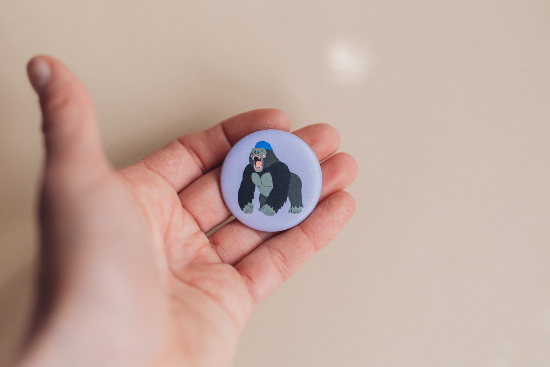 Button mit Sicherheitsnadel auf der Rückseite