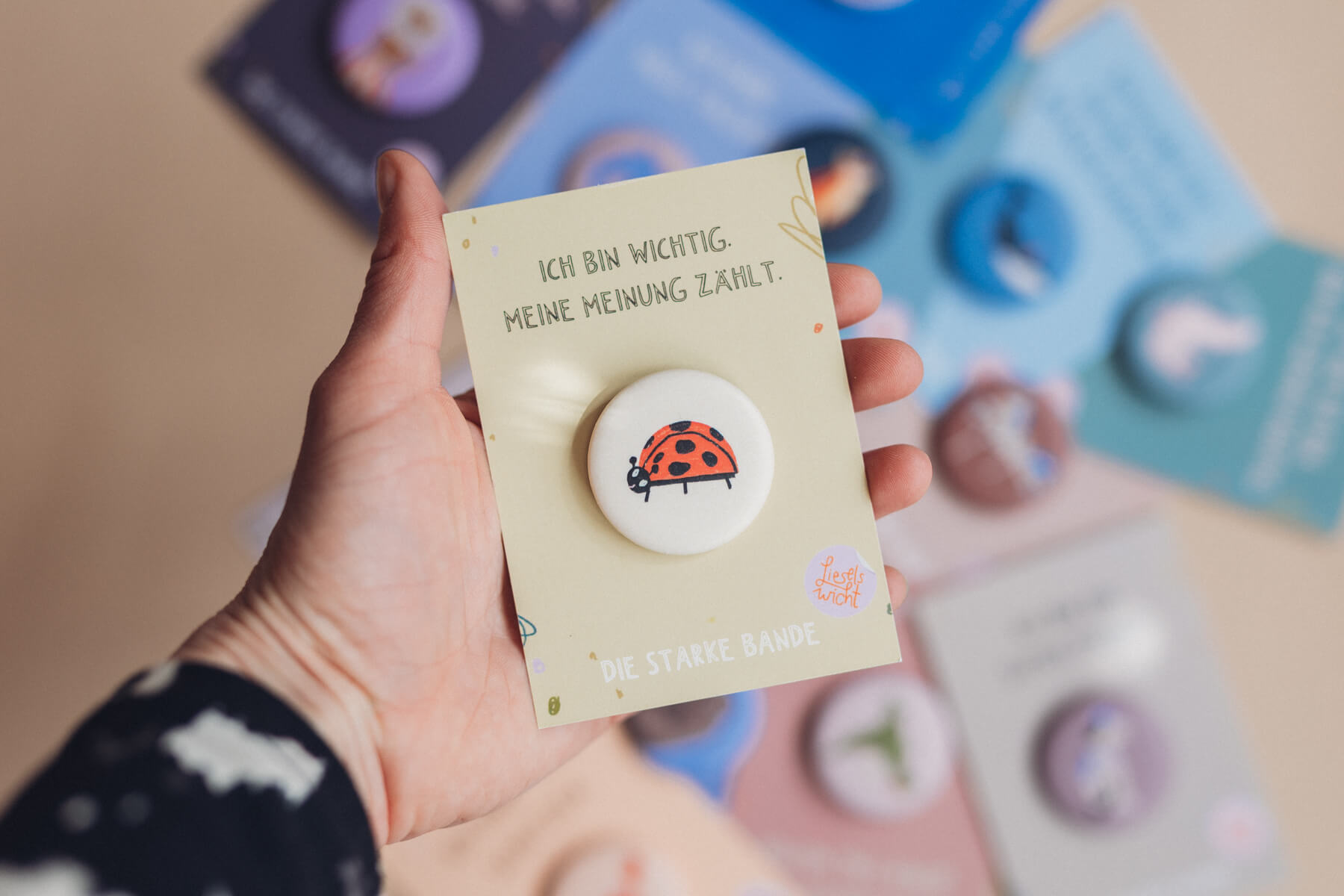 Dieser liebevoll gestaltete 38 mm Button ist mehr als nur ein Accessoire: Er ist ein täglicher Begleiter, der Kinder stärkt und ihnen ein gutes Gefühl mitgibt. In Kombination mit einem passenden A7 Kärtchen mit Affirmation entsteht ein kleines, bedeutungsvolles Geschenk, das bleibt.