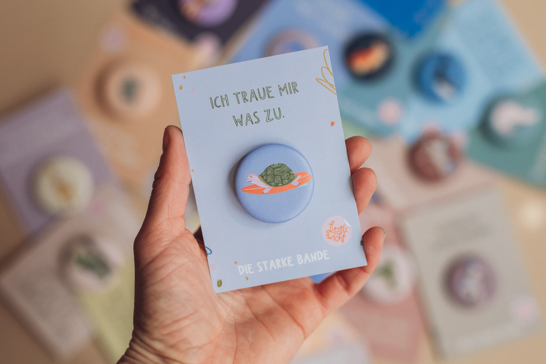 Dieser liebevoll gestaltete 38 mm Button ist mehr als nur ein Accessoire: Er ist ein täglicher Begleiter, der Kinder stärkt und ihnen ein gutes Gefühl mitgibt. In Kombination mit einem passenden A7 Kärtchen mit Affirmation entsteht ein kleines, bedeutungsvolles Geschenk, das bleibt.