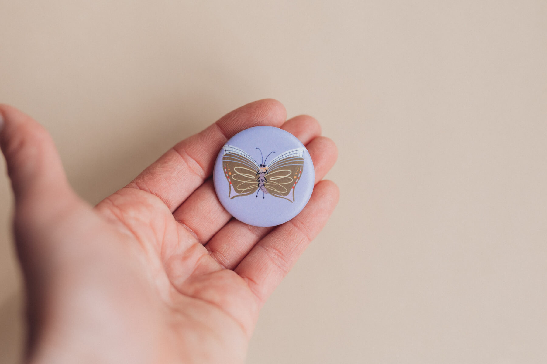 Button mit Sicherheitsnadel auf der Rückseite
