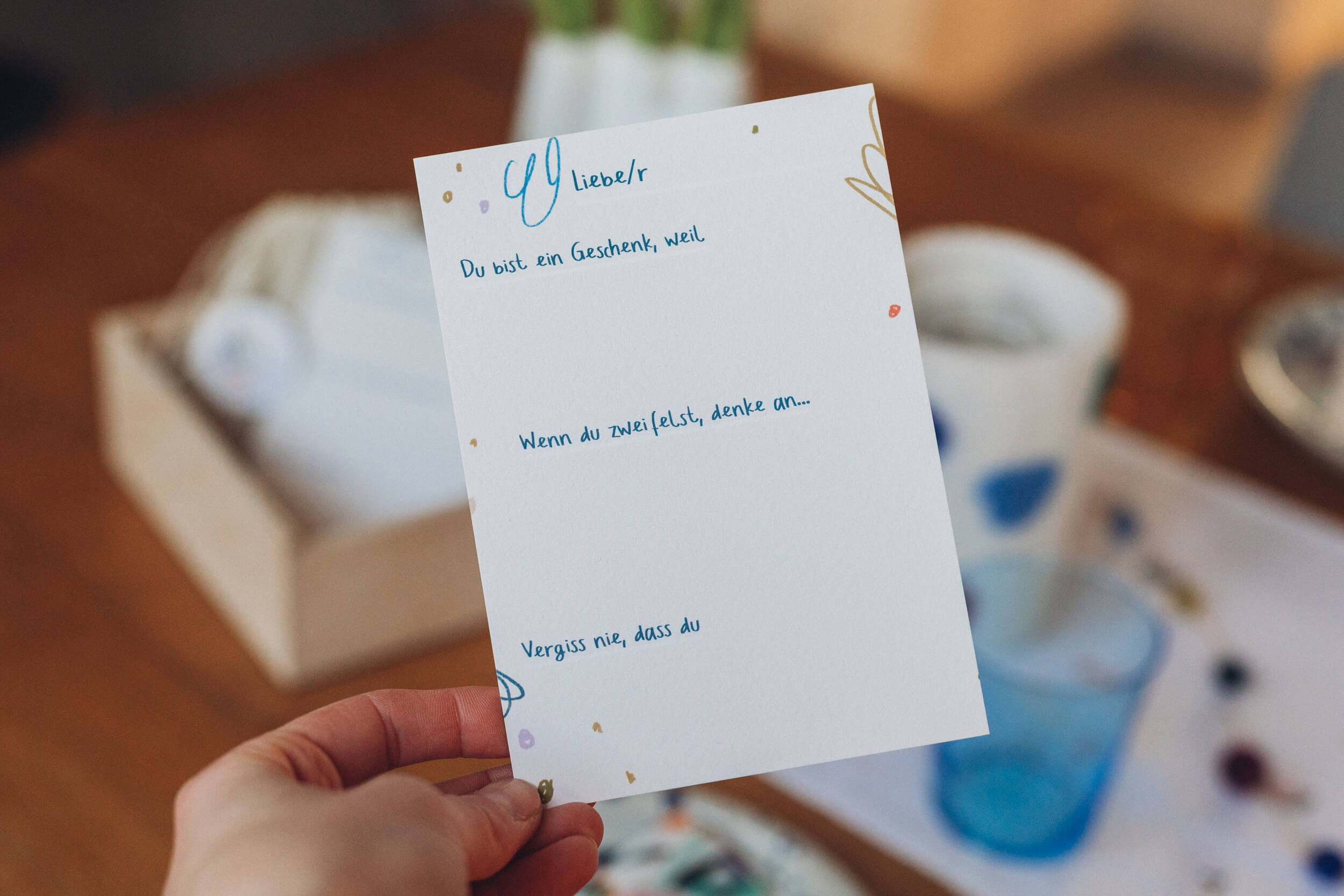 jede Karte mit liebevoll formulierten Satzanfängen, die individuell weitergeschrieben werden können
